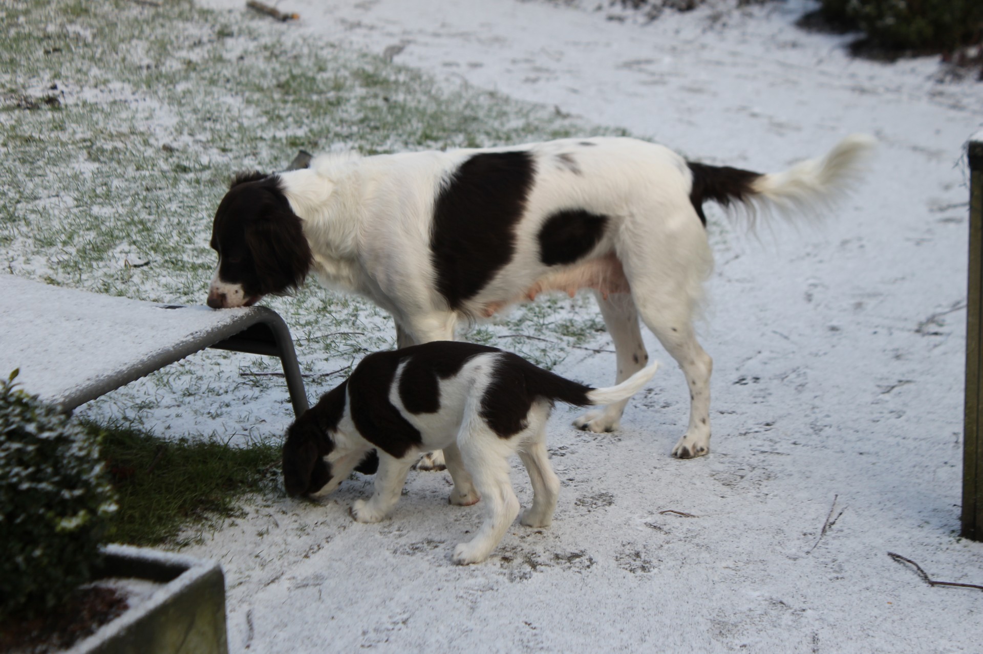 23 januari, pups in de sneeuw... hihi, wel een erg dun laagje !